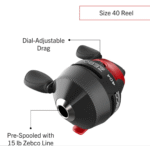 - EASY-TO-USE: The Zebco 404 spincast reel and rod combo has been a mainstay with anglers for years. The combo features a 5-foot 6-inch 2-piece fishing pole, size 40 reel and a 28-piece tackle kit. You will be ready to hit the water with the patented no-tangle design and simple push-button mechanics for ease of use making this reel great for both beginners and experienced anglers